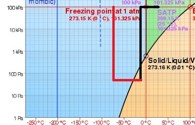 The water vapor starts at the bottom left point on the line. As it travels through the pump, it will eventually shoot up to the top of that vertical line. Notice that this changes from water vapor to ice. This absolutely means the pump will freeze up.